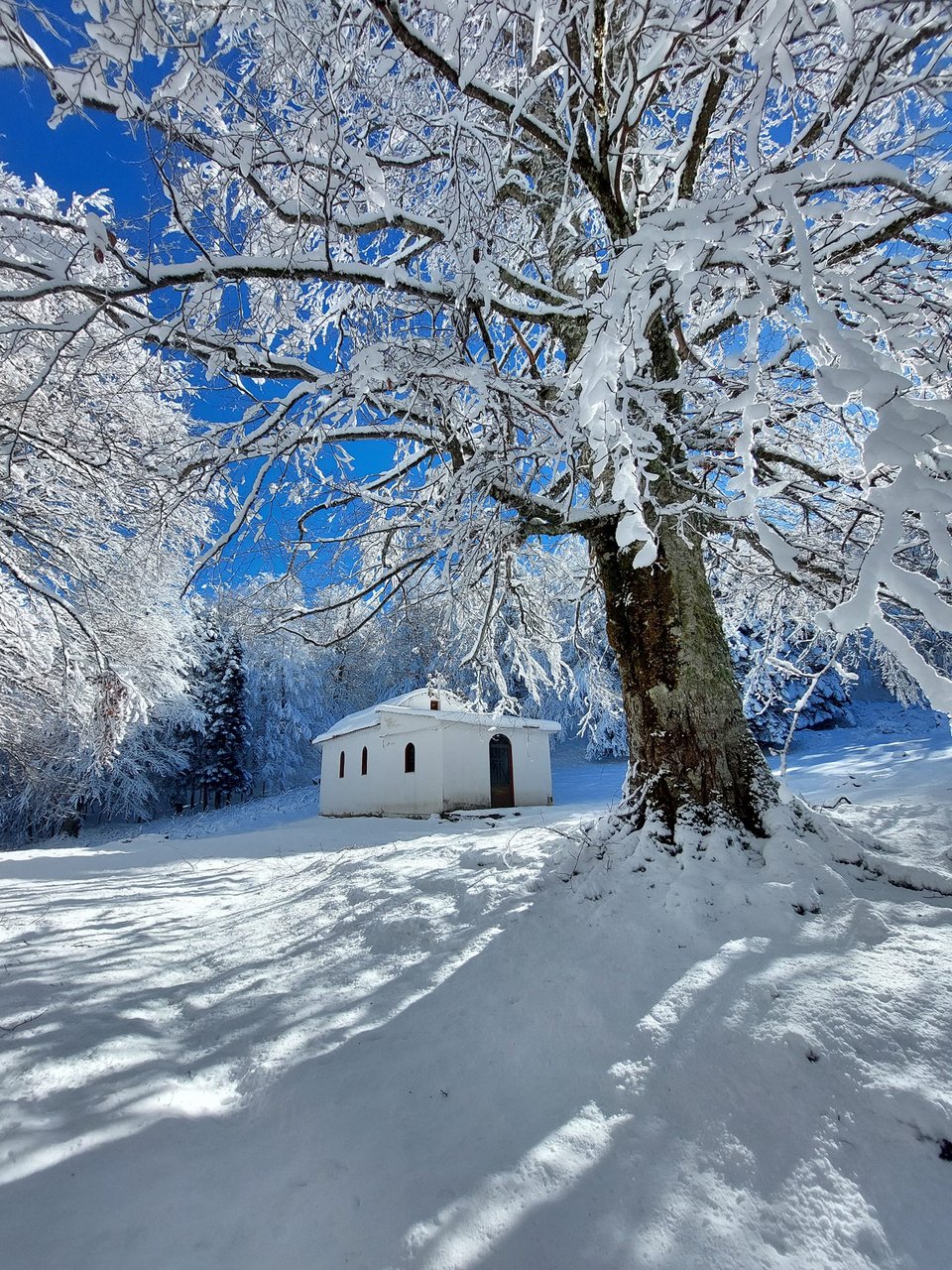 Στα λευκά ντύθηκε το νοτιότερο δάσος οξυάς στην Ευρώπη, που βρίσκεται πάνω από το Γαρδίκι Ομιλαίων, στη Δυτική Φθιώτιδα.