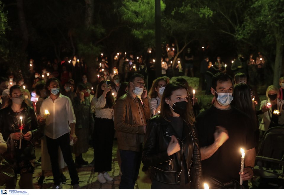 Αντίστοιχες εικόνες και στην Αρτέμιδα στην Ανατολική Αττική, όπου και εκεί οι πιστοί συγκεντρώθηκαν για να ακούσουν το «Χριστός Ανέστη» στον προαύλιο χώρο της εκκλησίας.