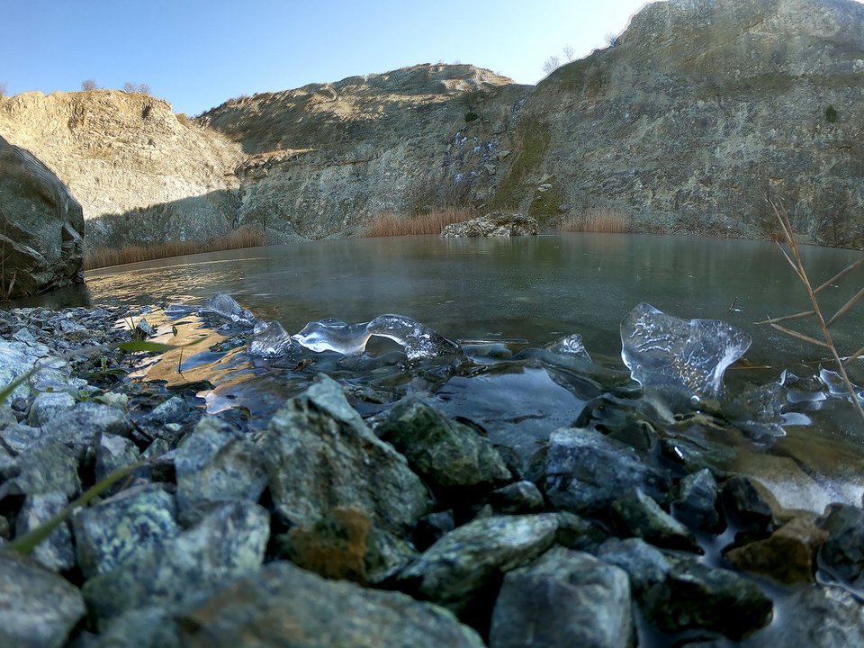 Εδώ και χρόνια τα έργα σταμάτησαν και η τρύπα έμεινε, να γεμίζει από νερό κι αυτό να μετατρέπεται σε πάγο. Πλέον, όπως φαίνεται και στις εικόνες που δημοσιεύει το τοπικό Μέσο, όλο το σκηνικό να θυμίζει κάτι από ταινία.