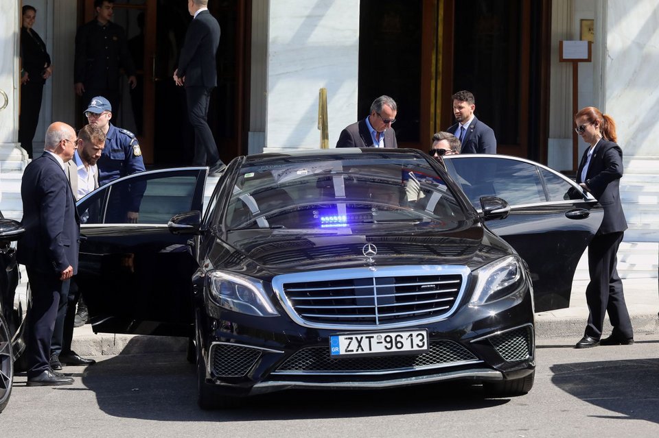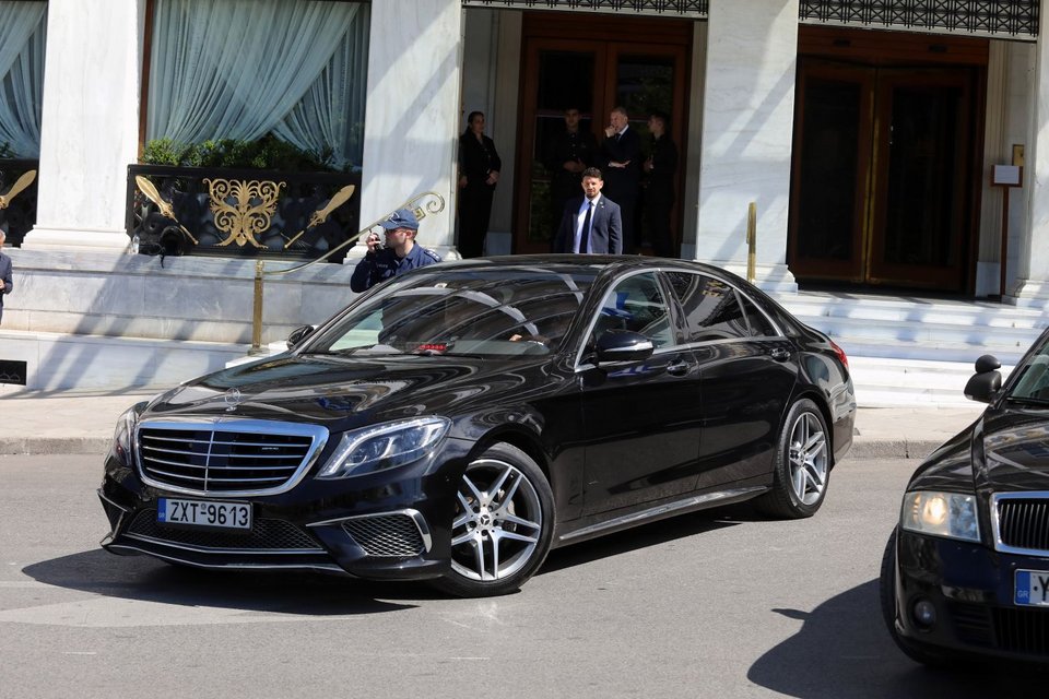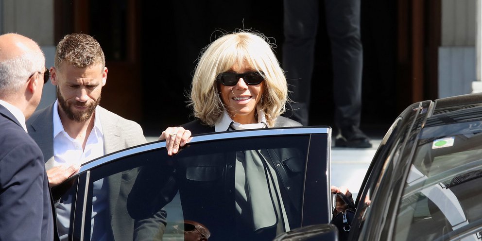 Την ώρα που ο Εμανουέλ Μακρόν και ο Κυριάκος Μητσοτάκης υπογράφουν την ελληνογαλλική αμυντική συμφωνία στο Μαξίμου, η Μπριζίτ Μακρόν κατέβηκε από το ξενοδοχείο όπου διαμένει στο Σύνταγμα, για να επιβιβαστεί σε όχημα που την περίμενε απ' έξω.