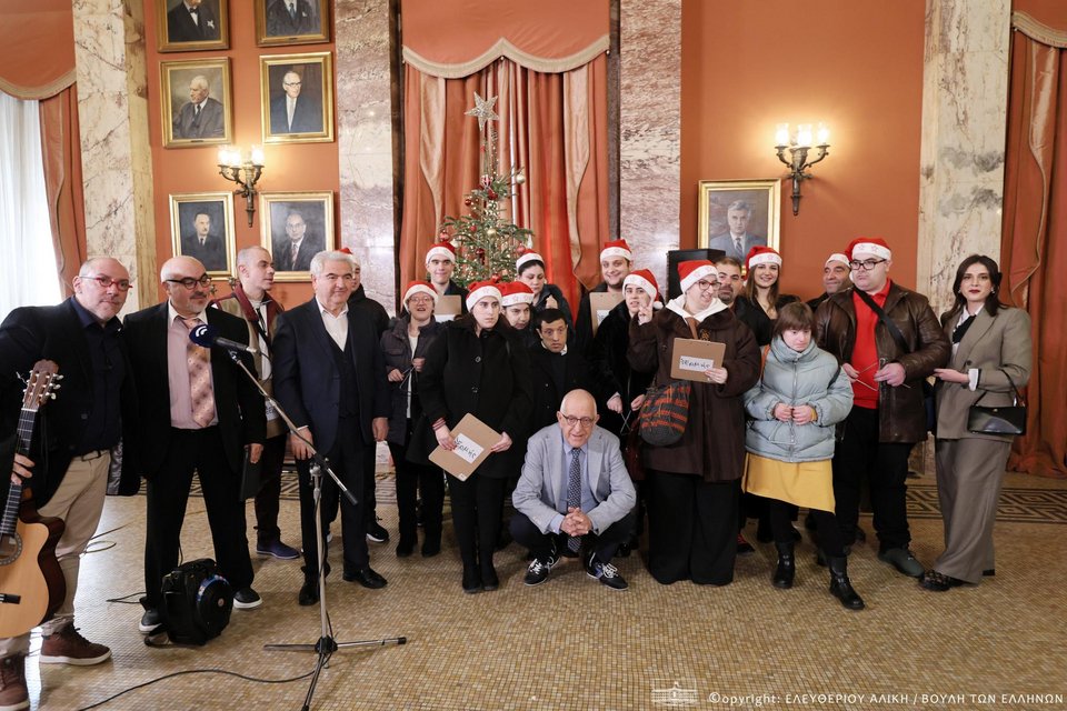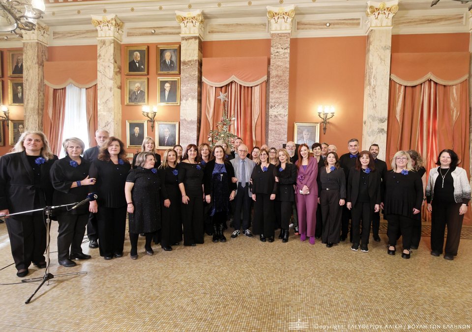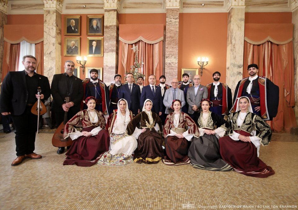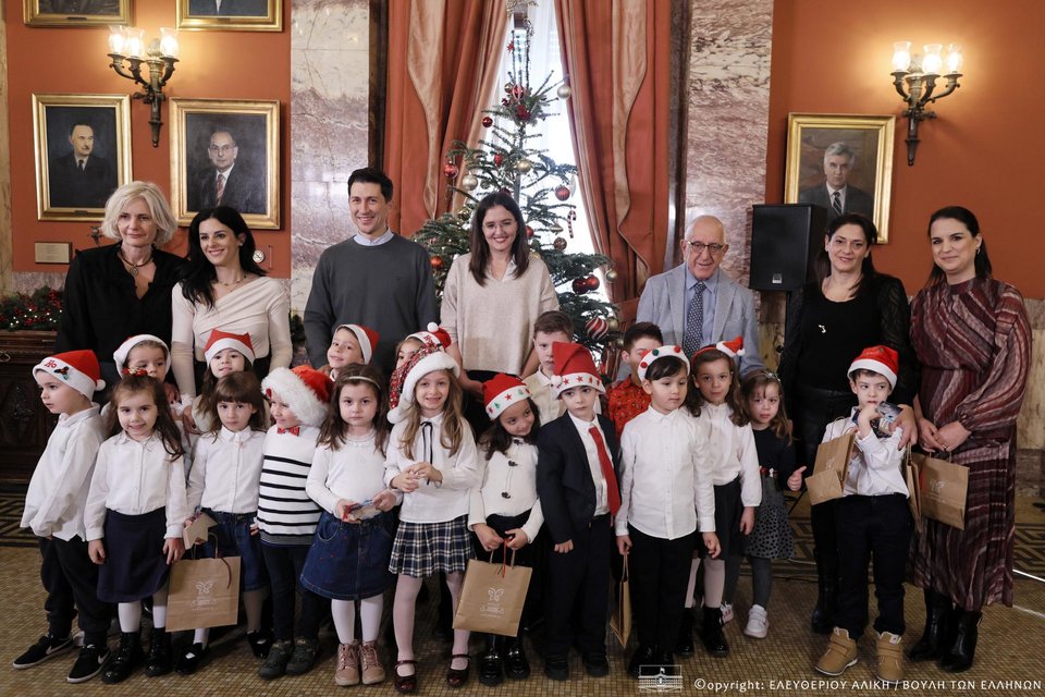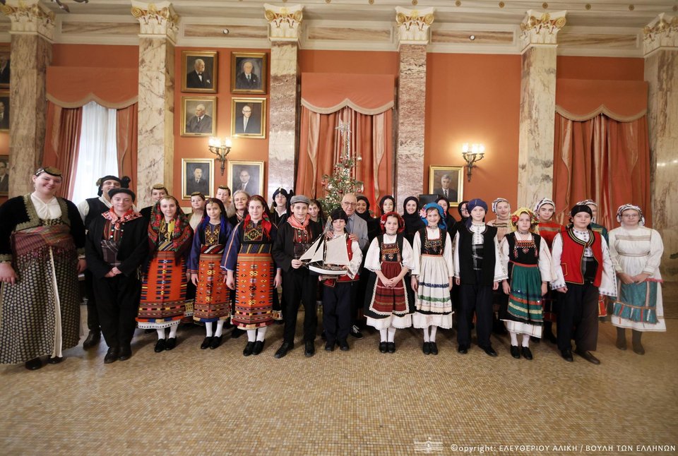 «Μέσα σε μια λαμπερή και εορταστική ατμόσφαιρα, το Μέγαρο της Βουλής υποδέχθηκε σήμερα τις μελωδίες της παράδοσης, καθώς κάλαντα και χοροί από κάθε γωνιά της πατρίδας μας πλημμύρισαν τους χώρους του Κοινοβουλίου και μετέφεραν το χαρμόσυνο μήνυμα των Χριστουγέννων».
