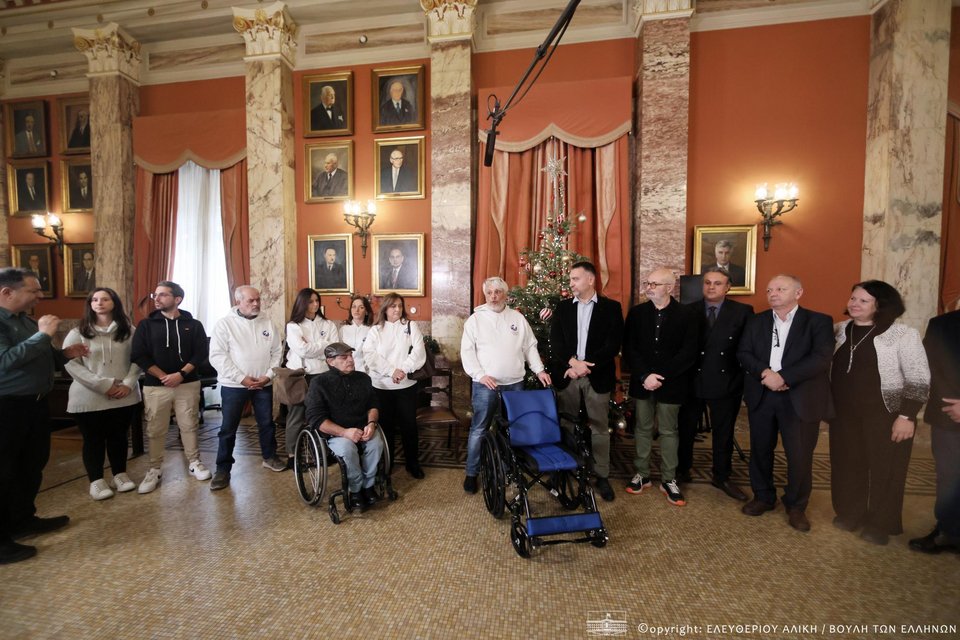Παράλληλα, σε μια κίνηση ουσιαστικής αλληλεγγύης, εκπρόσωποι της Συλλογικότητας «Βοήθεια Συνανθρώπων μας» από την Πετρούπολη, παρουσία του αντιπροέδρου του Πανελλήνιου Συλλόγου Παραπληγικών Γιώργου Χρηστάκη, παρέδωσαν στον Σύλλογο Υπαλλήλων της Βουλής και στον πρόεδρο του, Σπύρο Δημοσχάκη, ένα αναπηρικό αμαξίδιο. Το αμαξίδιο αυτό εξασφαλίστηκε ως το αντίτιμο της μεγάλης ποσότητας πλαστικών καπακίων που συγκεντρώθηκαν μεθοδικά στους χώρους του Κοινοβουλίου και θα προσφερθεί, με μέριμνα του Συλλόγου Υπαλλήλων της Βουλής, όπου διαπιστωθεί ότι υπάρχει μεγαλύτερη ανάγκη.