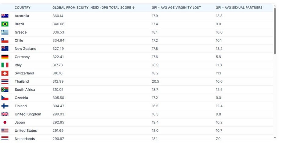 Σύμφωνα με στοιχεία της World Population Review, χώρες όπως η Αυστραλία, η Βραζιλία και η Ελλάδα συγκαταλέγονται ανάμεσα στις πιο σεξουαλικά απελευθερωμένες χώρες ή «άτακτες» χώρες του κόσμου, βάσει του Διεθνούς Δείκτη Σεξουαλικού Φιλελευθερισμού (Global Promiscuity Index -GPI). Βασικά, αυτές οι τρεις χώρες αποτελούν την κορυφαία τριάδα με την χώρα μας να βρίσκεται στην τρίτη θέση.