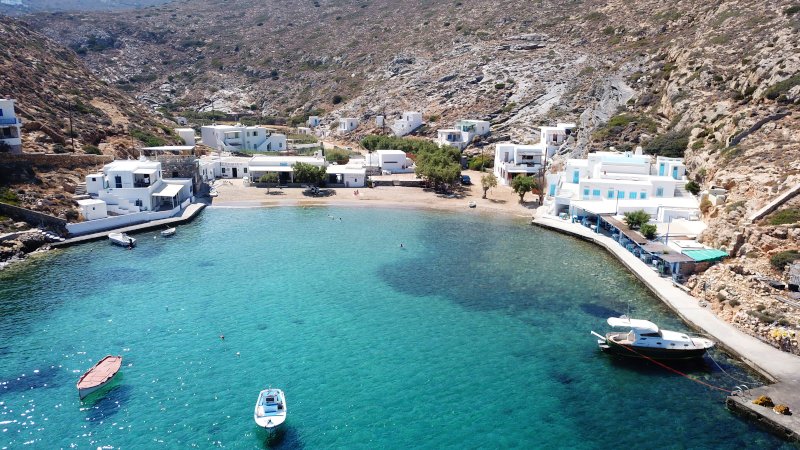 Βρίσκεται στο βορειότερο άκρο του νησιού. Παλαιότερα ήταν ένας ζωντανός οικισμός αγγειοπλαστών. Πρόκειται για ένα πανέμορφο ψαροχώρι, προστατευμένο μέσα σ’ ένα μικρό κολπίσκο, που διατηρεί μια μοναδική απλότητα. Οι δύο ψαροταβέρνες που βρίσκονται στην παραλία, είναι χτισμένες κυριολεκτικά πάνω στη θάλασσα. Όποια στιγμή της ημέρας κι αν την επισκεφτείτε, θα σας ξαφνιάσει η ηρεμία που επικρατεί, την οποία διακόπτει μόνο ο ήχος των ψαροκάικων που περνούν από το λιμανάκι. Δεν είναι τυχαίο ότι πολλοί ντόπιοι διαθέτουν εδώ μικρά οικήματα που τα χρησιμοποιούν ως θερινές, εξοχικές κατοικίες.