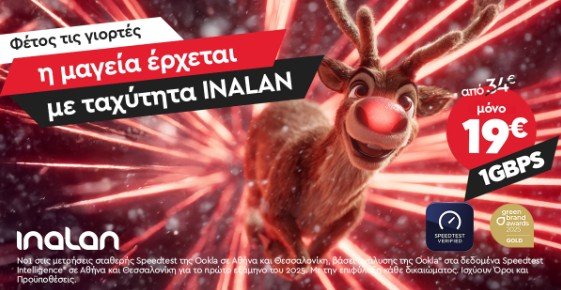 Φέτος τα Χριστούγεννα, η INALAN προσφέρει 1Gbps στα 19€ καικάνει αυτή τη σύνδεση προσιτή σε κάθε σπίτι. Γιατί η τεχνολογία αποκτά αξία μόνο όταν γίνεται γέφυρα. Και κάθε γέφυρα έχει έναν σκοπό: να φέρνει ανθρώπους πιο κοντά.
