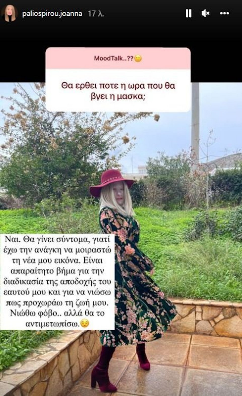 «Αναρρώνω μετά το χειρουργείο… Έχω ένα ανοιχτό τραύμα που με ταλαιπωρεί αρκετά. Κάνω υπομονή. Ελπίζω να μην είναι πολύ ‘δύσκολο’ για εσάς. Αυτή είναι η ζωή μου τώρα» έγραψε η Ιωάννα.