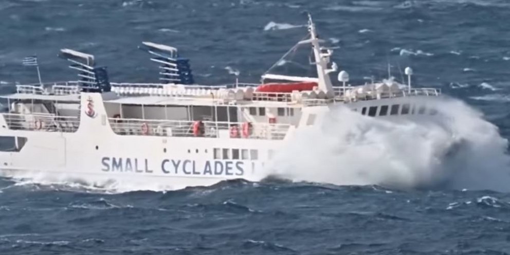 Ήταν από τα λίγα πλοία που κατάφεραν να ταξιδέψουν με προορισμό τα νησιά του Αιγαίου, με το βίντεο από το cyclades24 να δείχνει εντυπωσιακές εικόνες από το δρομολόγιό του.