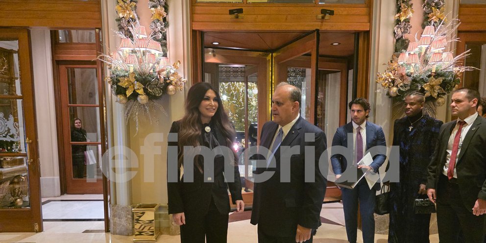 Ο πρόεδρος του American Hellenic Institute Νικ Λαρυγγάκης κατέβηκε τα σκαλιά του ξενοδοχείου «Μεγάλη Βρεταννία» για να υποδεχθεί την Κίμπερλι Γκίλφοϊλ, την οποία ως τώρα συναντούσε επί αμερικανικού εδάφους.