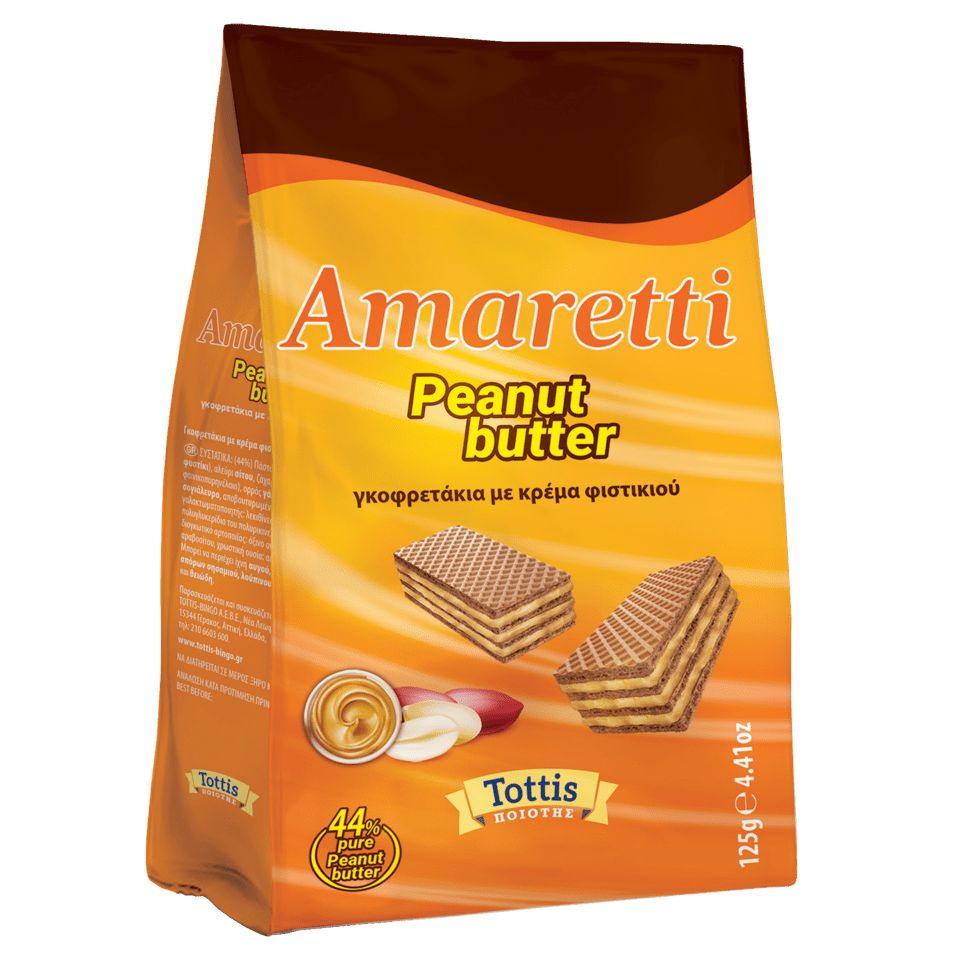 Peanut Butter Lovers, ήρθε η στιγμή που περιμένατε! Amaretti Φιστικοβούτυρο - Η απόλαυση που δεν ξέραμε ότι χρειαζόμασταν… μέχρι που τη δοκιμάσαμε! Τα iconic γκοφρετάκια Amaretti σε νέα γεύση, με απολαυστική τριπλή στρώση βελούδινης κρέμας φιστικιού - είναι ιδανικά για busy days & active lifestyles. Γιατί μπορεί το φιστικοβούτυρο να είναι τάση, αλλά τα Amaretti το κάνουν απόλαυση!