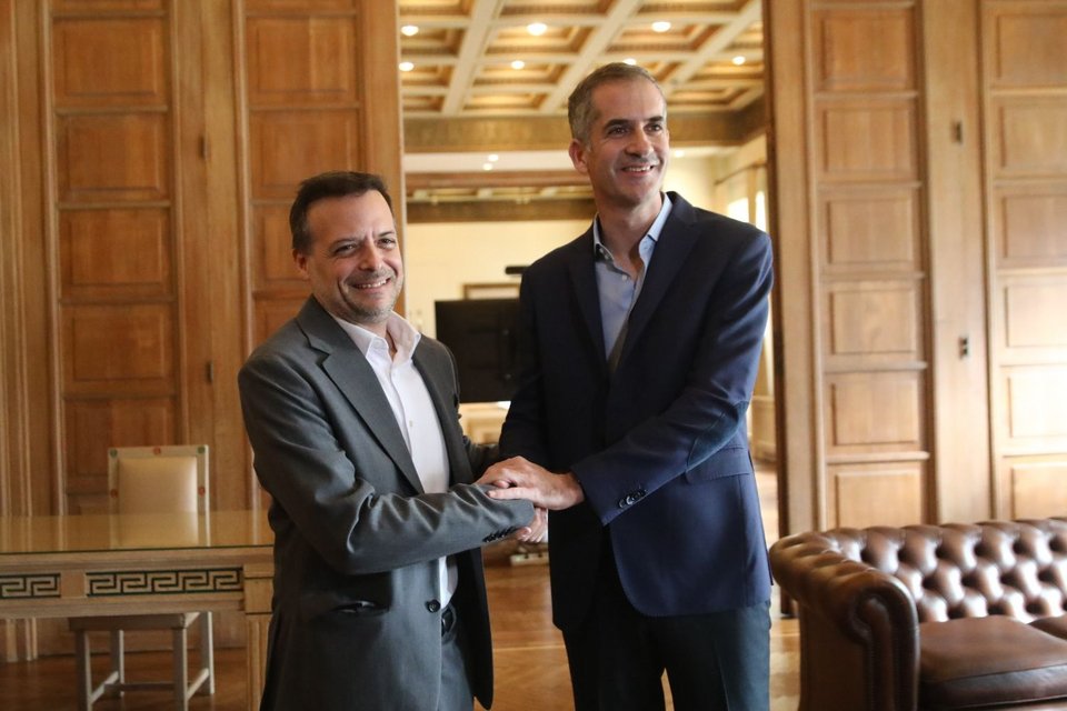 Τον νεοεκλεγέντα Δήμαρχο Αθηναίων, Χάρη Δούκα υποδέχθηκε σήμερα στο δημαρχείο της πόλης, ο Δήμαρχος Αθηναίων, Κώστας Μπακογιάννης.