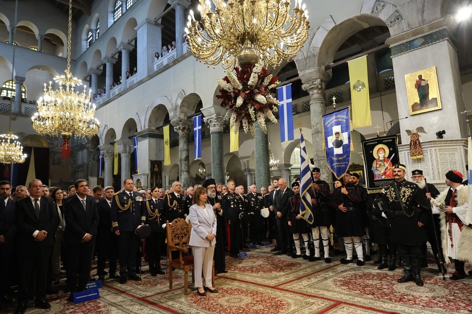 Στην επίσημη δοξολογία για τον πολιούχο Άγιο Δημήτριο και την επέτειο απελευθέρωσης της Θεσσαλονίκης παρέστη η Πρόεδρος της Δημοκρατίας Κατερίνα Σακελλαροπούλου.