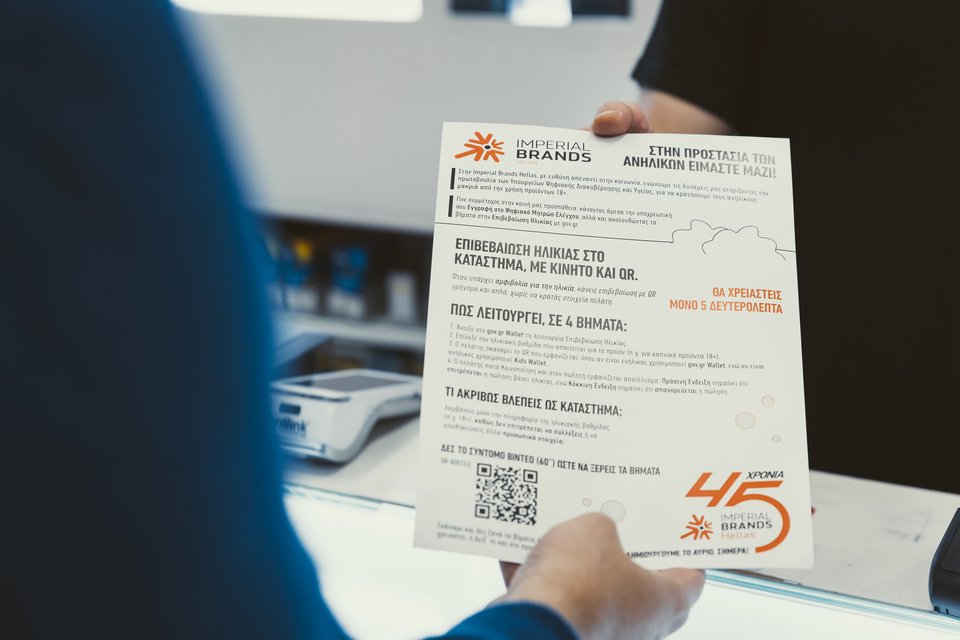 Απαντώντας με υπευθυνότητα σε αυτό, η Imperial Brands Hellas, ανέλαβε άμεσα δράση για την ενημέρωση της αγοράς, υλοποιώντας την πανελλαδική πρωτοβουλία «Στην Προστασία των Ανηλίκων Είμαστε Μαζί» και ενεργοποιώντας το εκτεταμένο δίκτυο συνεργατών της σε ολόκληρη τη χώρα.