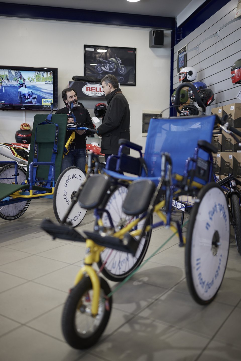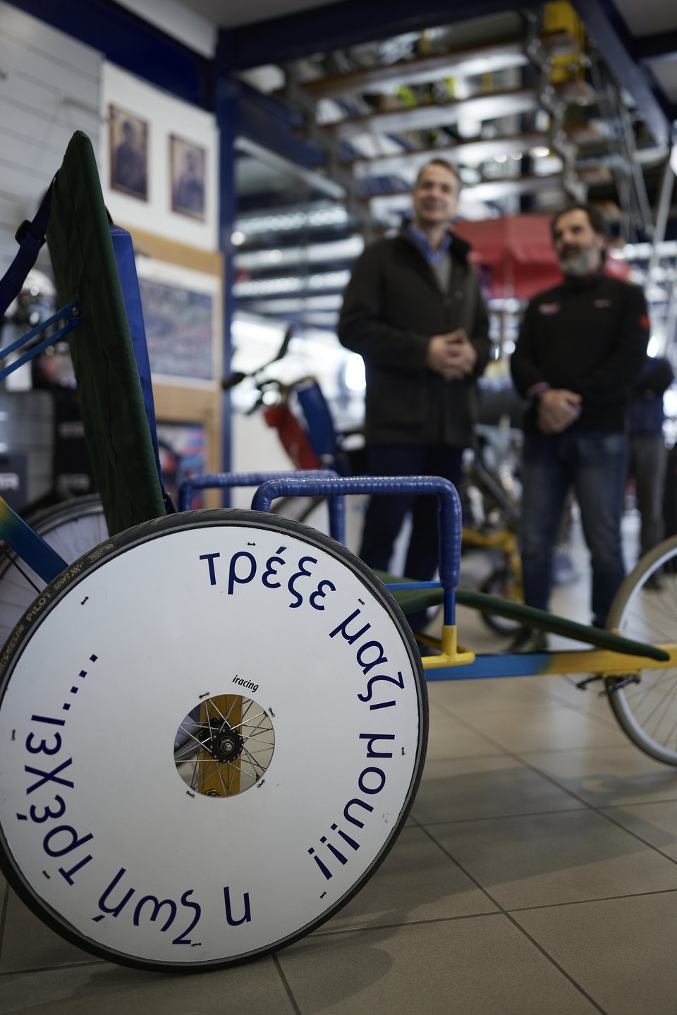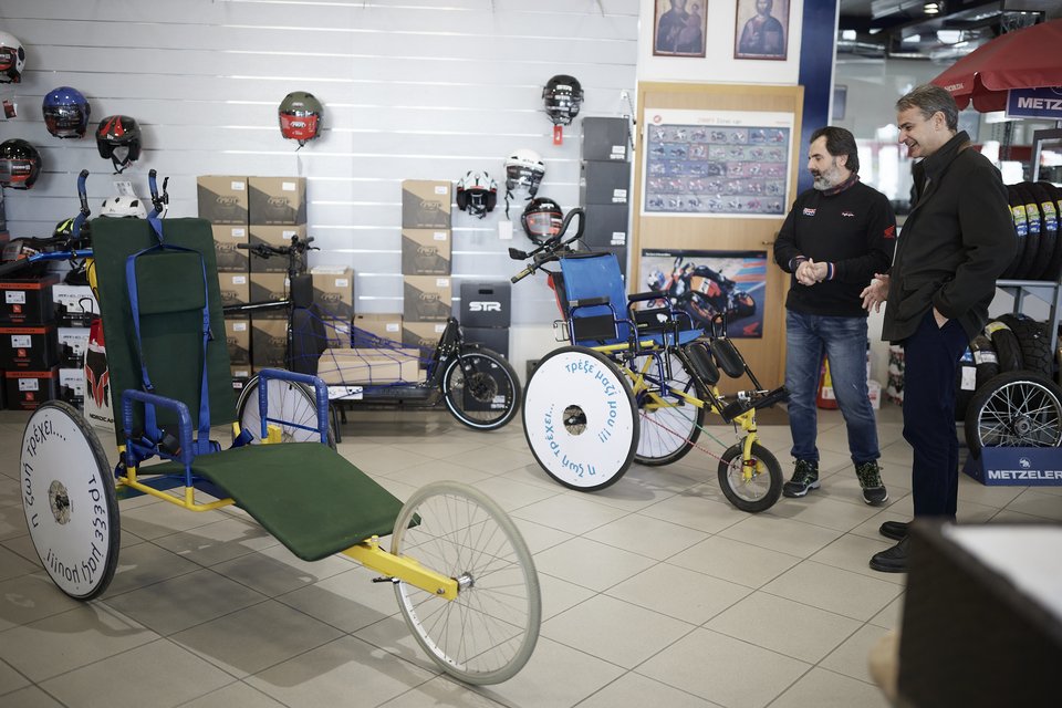 Πιο συγκεκριμένα, ο Κυριάκος Μητσοτάκης συνοδευόμενος από τη συζυγό του Μαρέβα Γκραμπόφσκι - Μητσοτάκη επισκέφθηκαν το κατάστημα που διατηρεί στην περιοχή της Πτολεμαΐδας ο κ. Αχιλλέας Τσαλκιτζίδης ο οποίος με δική του πρωτοβουλία κατάφερε να συμμετέχουν ΑμεΑ με αμαξίδιο στους ελληνικούς μαραθωνίους.
