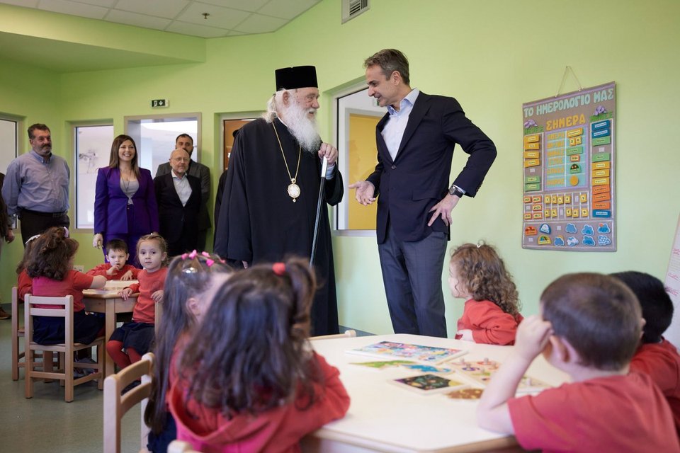 Στη συνέχεια, ο Πρωθυπουργός και ο Αρχιεπίσκοπος μετέβησαν στον παιδικό σταθμό «Η Ζωοδόχος Πηγή», όπου γίνονται μαθήματα αγγλικής γλώσσας και θεατρικού παιχνιδιού. Ο Πρωθυπουργός είδε από κοντά τους χώρους του σταθμού και συνομίλησε με τους 15 μικρούς μαθητές.