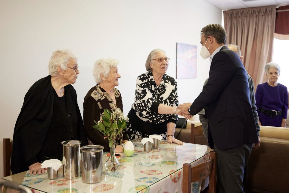 Αμέσως μετά, επισκέφθηκαν το Κέντρο Γεροντολογίας «Άγιος Πορφύριος», όπου ξεναγήθηκαν στους χώρους του και συζήτησαν με τους 60 ηλικιωμένους που φιλοξενούνται στη δομή, ανταλλάσσοντας ευχές για το Πάσχα. Το κέντρο έχει κατασκευαστεί με χρηματοδότηση από το ΕΣΠΑ σε έκταση 27 στρεμμάτων, με συνολική επιφάνεια κτιρίων 5.000 τ.μ.