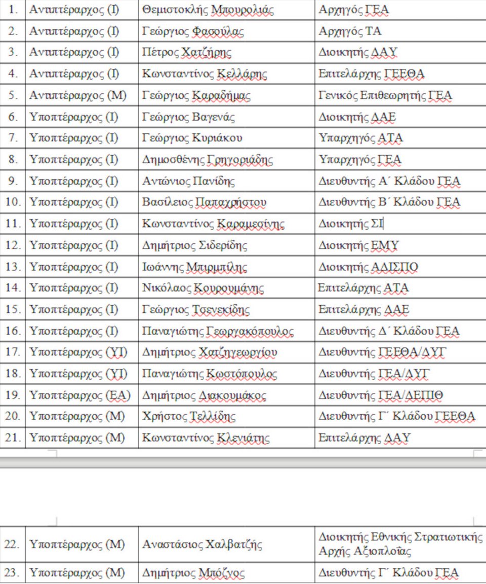 1. Προακτέους κατ’ εκλογή στον βαθμό του Ταξίαρχου, τους: