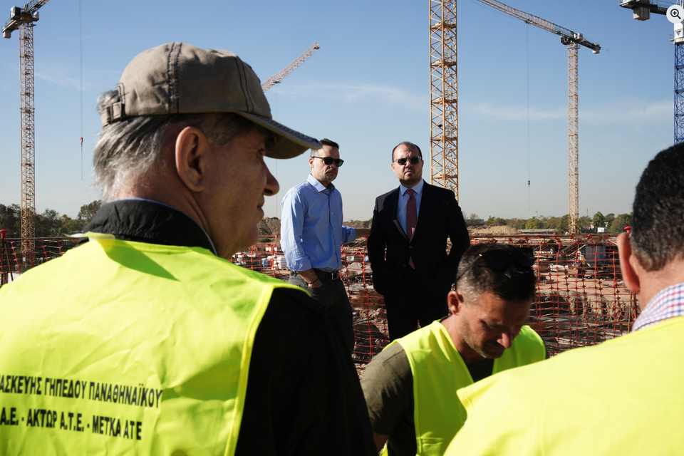 Διακρίνονται ήδη οι βάσεις στήριξης για τις κερκίδες στο βορειοδυτικό τμήμα. Μαζί με τον Υπουργό Περιβάλλοντος και Ενέργειας Σταύρο Παπασταύρου επισκεφθήκαμε σήμερα τον χώρο και τον ενημέρωσα αναλυτικά για τις εργασίες, οι οποίες "τρέχουν" με πυρετώδεις ρυθμούς. Παράλληλα, ξεκίνησαν και οι πρόδρομες εργασίες για τον Ερασιτέχνη. Προχωράμε!»