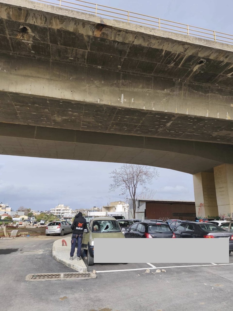 Έπεσε κομμάτι τσιμέντου από γέφυρα και έσπασε παρμπρίζ αυτοκινήτου. Ευτυχώς δεν υπήρξαν θύματα.