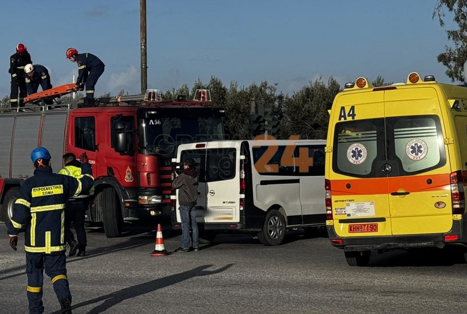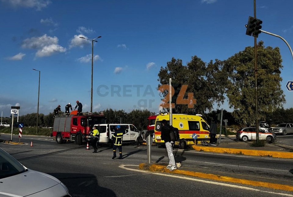 Από την σύγκρουση τραυματίστηκε ακόμη ένα άτομο, συνοδηγός στο ΙΧ. Οι δύο τραυματίες, οι οποίοι φέρουν τραύματα στο κεφάλι και τα κάτω άκρα, μεταφέρθηκαν στο Βενιζέλειο Νοσοκομείο Ηρακλείου.