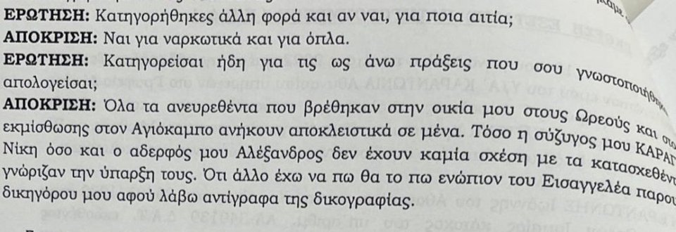 «Όλα τα ανευρεθέντα που βρέθηκαν (…) ανήκουν αποκλειστικά σε μένα. Τόσο η σύζυγος μου όσο και ο αδεφος μου δεν έχουν καμία σχέση».