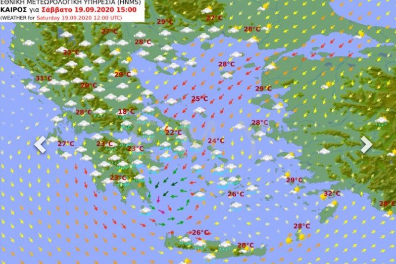 Σύμφωνα με την ΕΜΥ, το Σάββατο αναμένονται στα ανατολικά νεφώσεις, με τοπικές βροχές και σποραδικές καταιγίδες, οι οποίες βαθμιαία θα περιοριστούν στα νότια. Στην υπόλοιπη χώρα ο καιρός θα είναι νεφελώδης, με τοπικές βροχές και πιθανώς μεμονωμένες καταιγίδες.