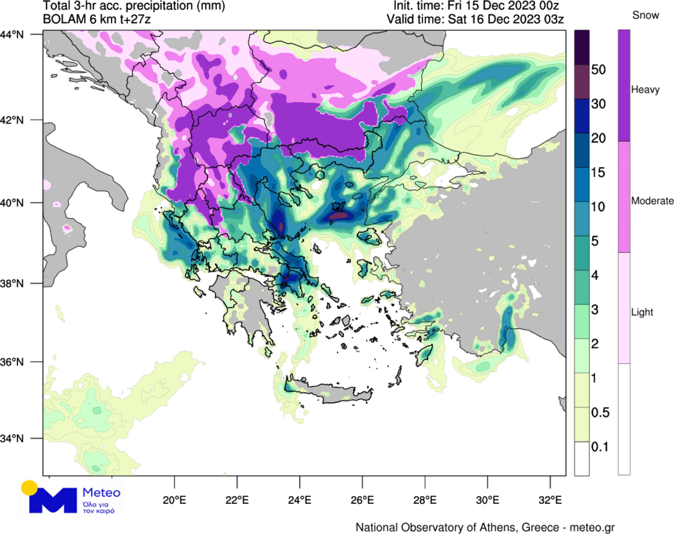 Από την πλευρά του, το Meteo αναφέρει ότι το Σάββατο 16/12 έντονη κακοκαιρία θα επικρατήσει στις περισσότερες περιοχές της χώρας, με τοπικά ισχυρές βροχές και καταιγίδες.