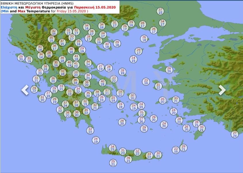 Σύμφωνα με την πρόγνωση της ΕΜΥ, οι υψηλές θερμοκρασίες θα διατηρηθούν ως και την Δευτέρα, με τα 40αρια να κάνουν αποπνικτική την ατμόσφαιρα, σε συνδυασμό με την συγκέντρωση αφρικάνικης σκόνης. Τα 40αρια που θα πιάσει αυτό το τριήμερο η θερμοκρασία, αποτελούν παγκόσμιο φαινόμενο, για τον μήνα Μάιο, καθώς η θερμοκρασία στη χώρα θα είναι κατά 10 βαθμούς μεγαλύτερη από τον μέσο όρο θερμοκρασίας σε όλο τον πλανήτη. Ηδη χθες το θερμόμετρο «άγγιξε» τους 37 βαθμούς, με την Κωπαϊδα και την Θήβα να έχουν την υψηλότερη θερμοκρασία (36.6).