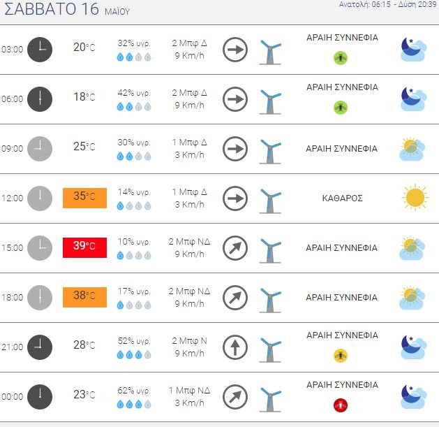 Και στην Αττική το θερμόμετρο την Παρασκευή θα φτάσει τους 39 βαθμούς Κελσίου στο κέντρο της Αθήνας, ενώ για το σαββατοκύριακο η μέγιστη θερμοκρασία θα είναι 40 βαθμοί.