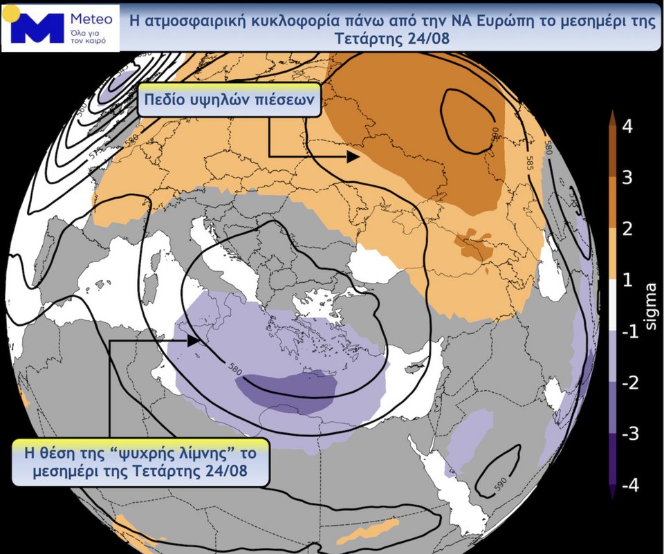 Από την πλευρά του, το Meteo προβλέπει ότι την Πέμπτη 25 Αυγούστου αναμένονται βροχές και καταιγίδες στις περισσότερες περιοχές της χώρας.