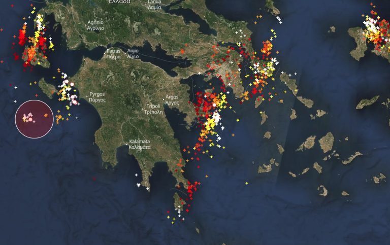 Ενδεικτικός είναι ο παρακάτω χάρτης από την κεραυνική δραστηριότητα που σημειώθηκε τις τελευταίες ώρες στη χώρα. Όπως αποτυπώνεται στο λεκανοπέδιο της Αττικής οι κεραυνοί έπεφταν... βροχή.