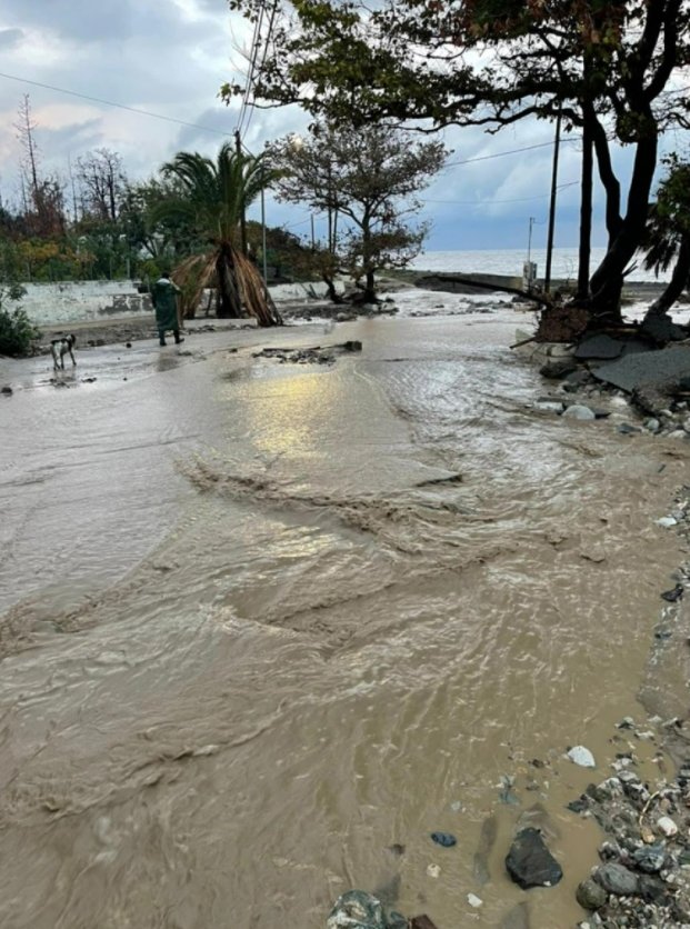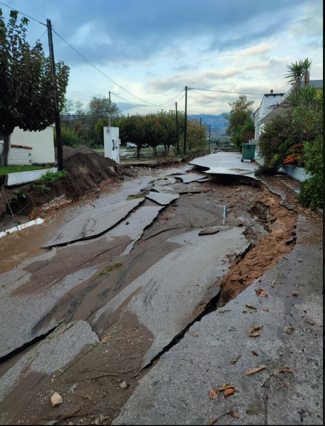Δρόμοι έχουν γίνει ποτάμια και κόπηκαν στα δύο, η άσφαλτος έχει καταλήξει στη θάλασσα, ενώ μεγάλες είναι οι ζημιές και στην περιοχή του Μαντουδίου.