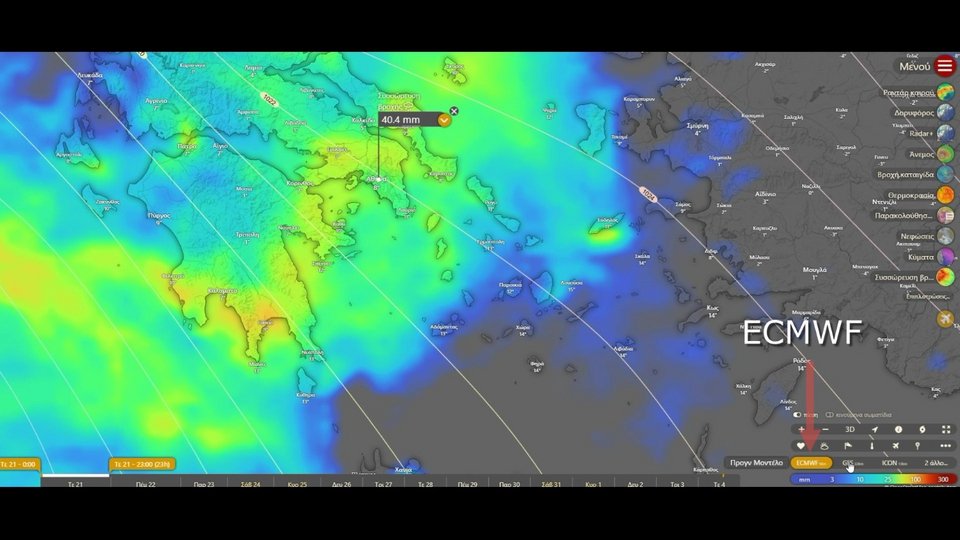 Το ICON δίνει σαφώς υψηλότερα αθροίσματα, με τοπικές τιμές που προσεγγίζουν ή ξεπερνούν τα 80 mm. Συχνά κατηγορείται για "υπερβολή", όμως σε τέτοιες περιπτώσεις λειτουργεί ως προειδοποιητικό σήμα: αναγνωρίζει καλύτερα τη δυναμική ανατροφοδότηση και τη δυνατότητα τοπικών ραγδαιοτήτων. Δεν σημαίνει ότι θα επαληθευτεί πλήρως, αλλά ότι το ταβάνι του κινδύνου είναι υψηλότερο από αυτό που δείχνουν τα πιο συντηρητικά σενάρια.
