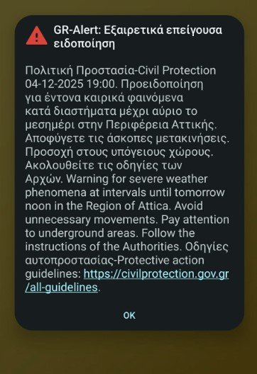 Προειδοποιητικό μήνυμα του 112 ήχησε στα κινητά των κατοίκων της Αττικής.