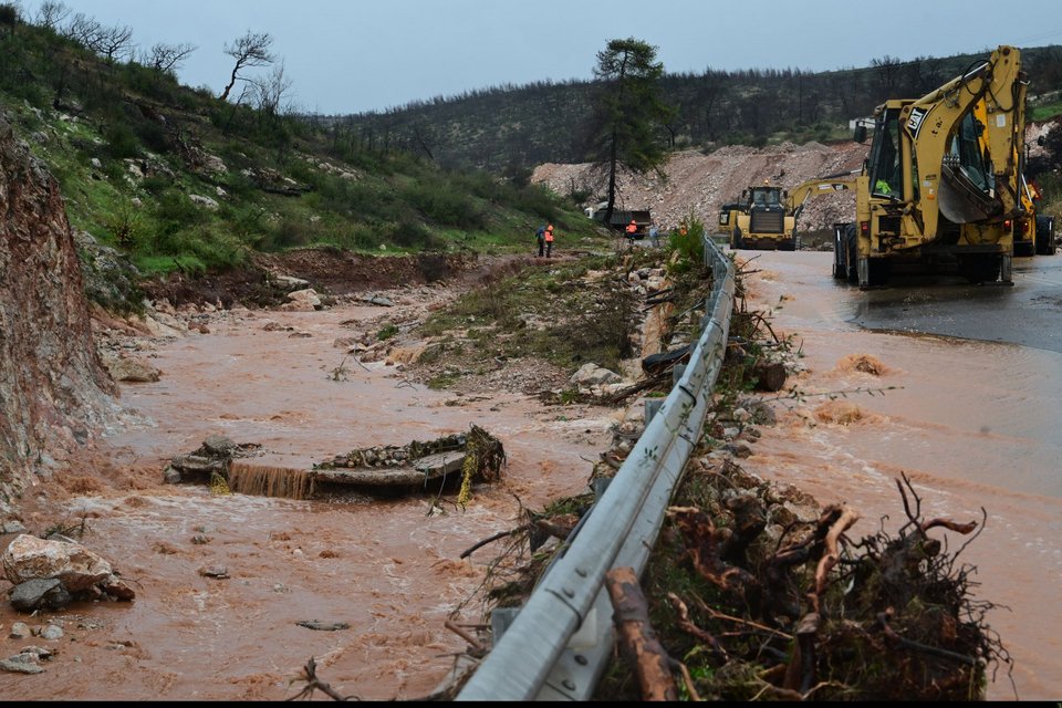 Παράλληλα, επισημαίνει ότι τα νερά αυτή τη φορά ήρθαν από διαφορετικό σημείο και ότι οι πρόσφατες πυρκαγιές στα βουνά το 2021 και το 2023 δυσχεραίνουν τη συγκράτηση του νερού.