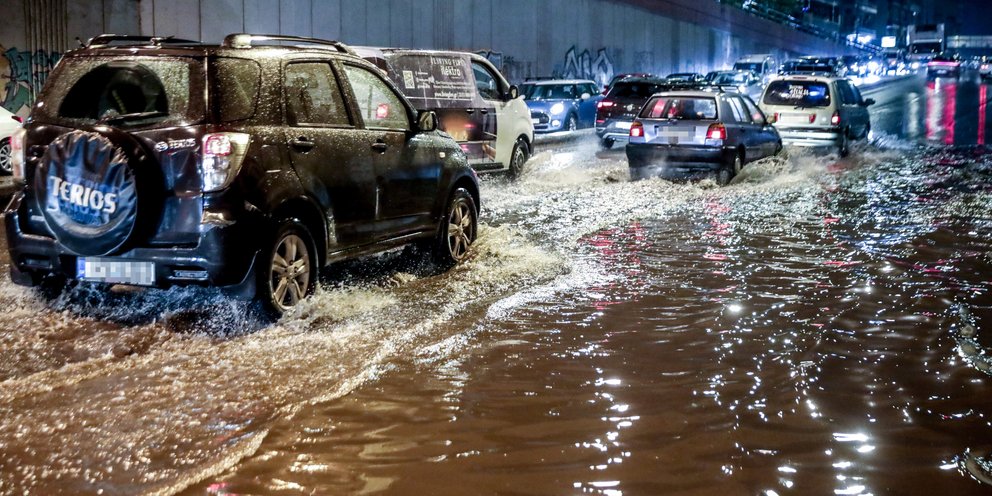 Δρόμοι έχουν μετατραπεί σε ποτάμια. Λόγω των έντονων καιρικών φαινομένων τα σχολεία της Αττικής έχει αποφασιστεί να παραμείνουν κλειστά.