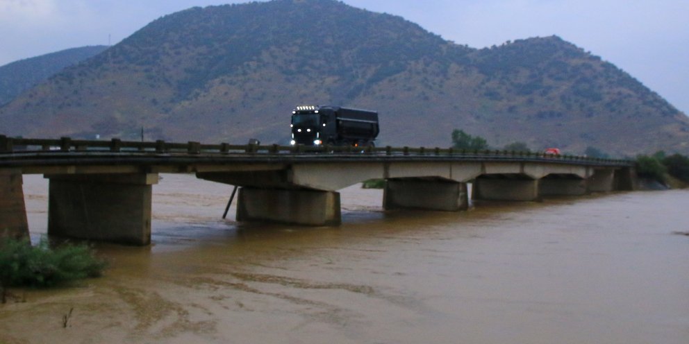 Η κακοκαιρία Byron σφυροκοπά όλη τη νύχτα τη Θεσσαλία, με τον ποταμό Ενιπέα να έχει υπερχειλίσει.