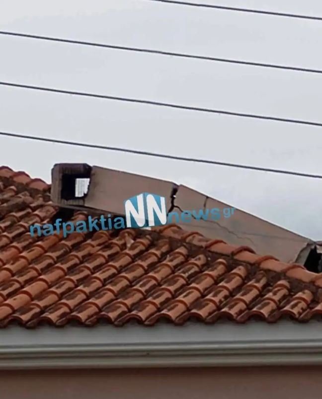 Σύμφωνα με το nafpaktianews, ο δυνατός αέρας γκρέμισε καμινάδα στον Πλατανίτη Ναυπακτίας: