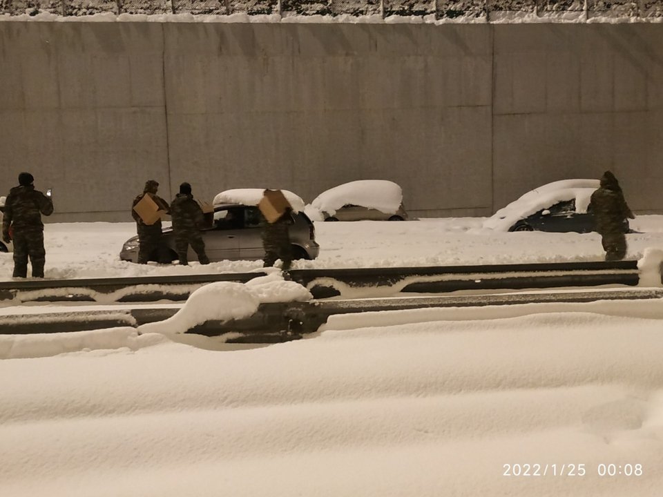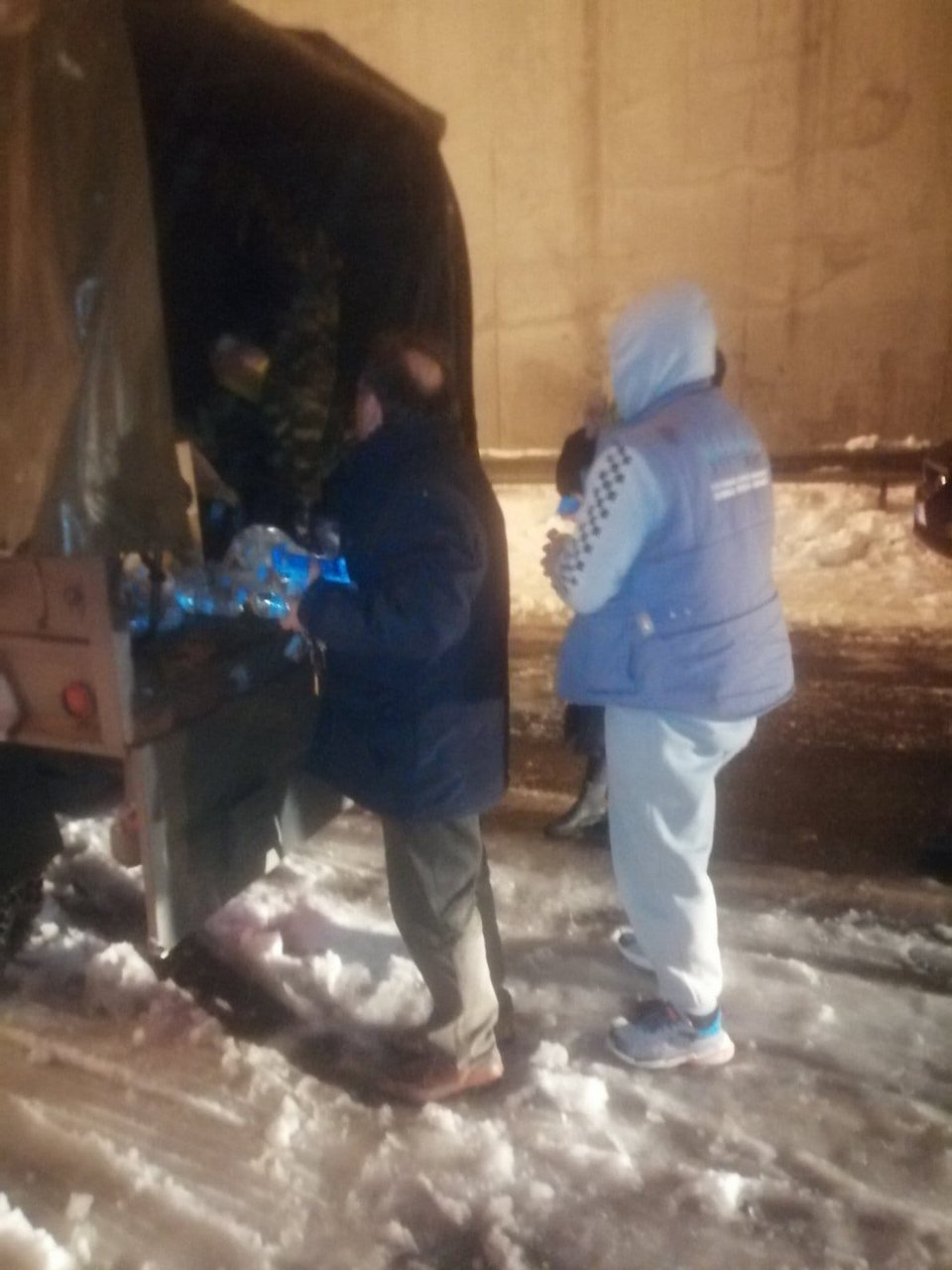 Έτσι, λοιπόν, οι οδηγοί έχουν μείνει χωρίς φαγητό, χωρίς νερό, με τα καύσιμα να τελειώνουν και το σκοτάδι να έχει έρθει, με το χιόνι να πέφτει ακατάπαυστα και το κρύο να είναι τσουχτερό.