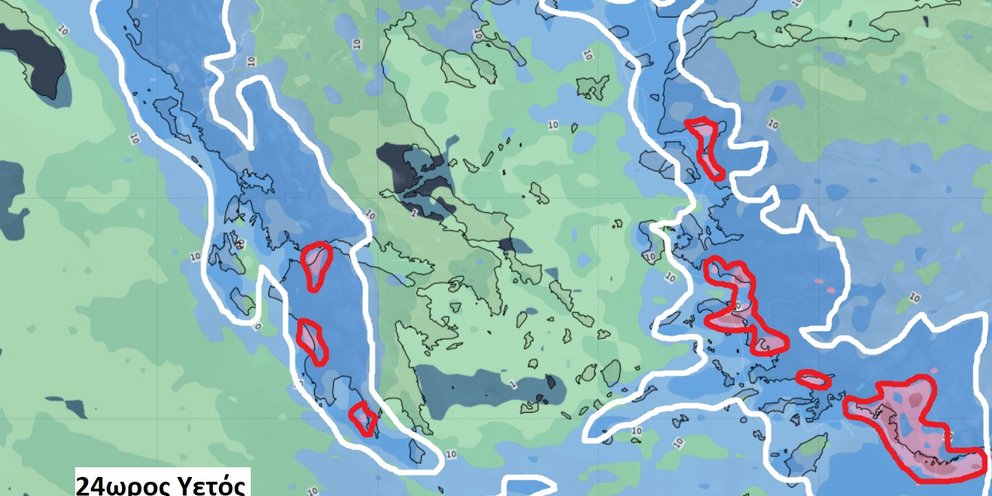ε. στα νησιά του βορείου και ανατολικού Αιγαίου και τα Δωδεκάνησα από νωρίς το απόγευμα μέχρι και το βράδυ. - Πολύ ισχυροί έως θυελλώδεις άνεμοι θα πνέουν