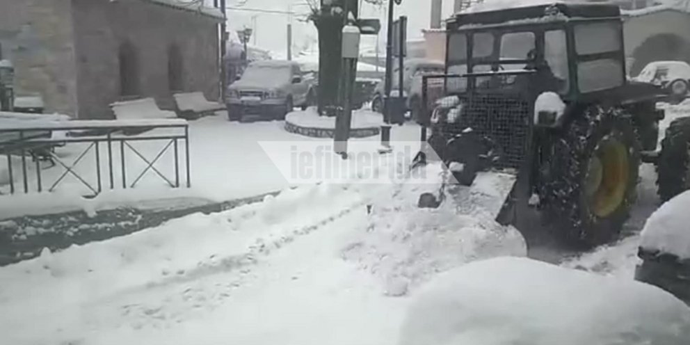 Από τις 05:00 το πρωί χιονίζει ασταμάτητα στο χωριό Στρόπωνες και οι κάτοικοι με μηχανήματα της κοινότητας προσπαθούν να κρατήσουν τον κεντρικό δρόμο ανοιχτό. Μέχρι σήμερα ο χρονιάς δεν είχε κάνει την εμφάνιση του στο χωριό. Σήμερα όμως όπως είπε στο iefimerida.gr ο Κώστας Κολοκούρης, κάτοικος της περιοχής «εάν συνεχίσει έτσι το χιόνι μπορεί να φτάσει και το ένα μέτρο».
