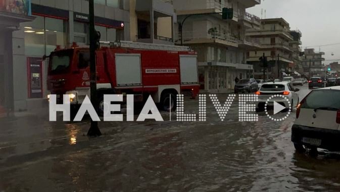 Πλημμύρισαν δρόμοι στον Πύργο