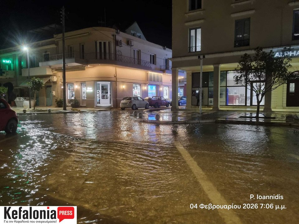 Στην Κεφαλονιά, η παραλιακή λεωφόρος του Αργοστολίου πλημμύρισε, με τα νερά να καλύπτουν μεγάλο μέρος του οδοστρώματος και να δυσχεραίνουν την κυκλοφορία πεζών και οχημάτων, ενώ σε ορισμένα σημεία παρασύρθηκαν φερτά υλικά, σύμφωνα με το kefaloniapress.gr.