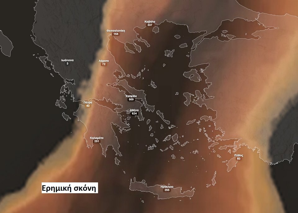 «Οι δύο χάρτες, όταν εμφανίζουν παρόμοιο μοτίβο, επιβεβαιώνουν ότι η επιβάρυνση της ποιότητας του αέρα οφείλεται κυρίως στη μεταφορά σκόνης από τη Σαχάρα (Ερημική σκόνη), με τη βοήθεια των ισχυρών νοτίων ανέμων» αναφέρει ο μαθηματικός σε ανάρτησή του.