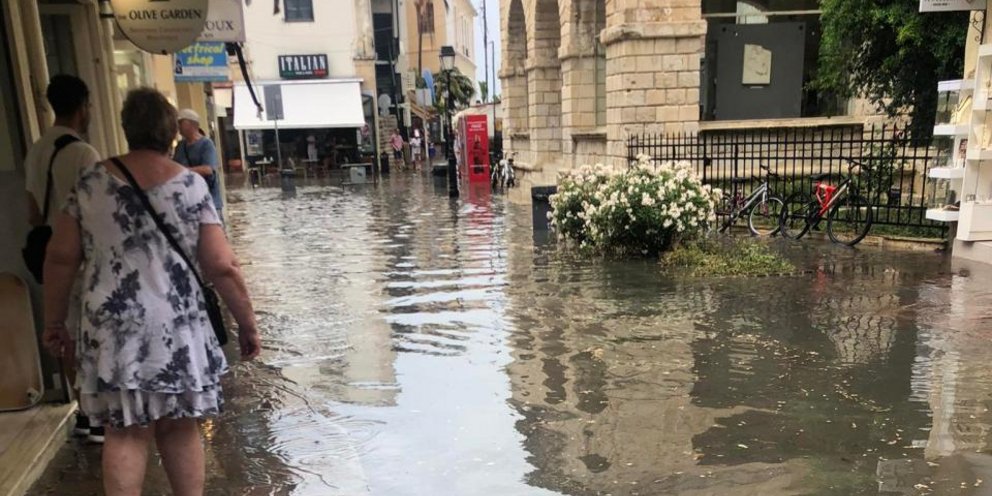 Ενδεικτικό είναι ότι η ένταση της βροχής, μέσα σε μόλις μία ώρα, δημιούργησε προβλήματα τόσο στην παλιά πόλη όσο και σε μεγάλο μέρος του οικιστικού ιστού.