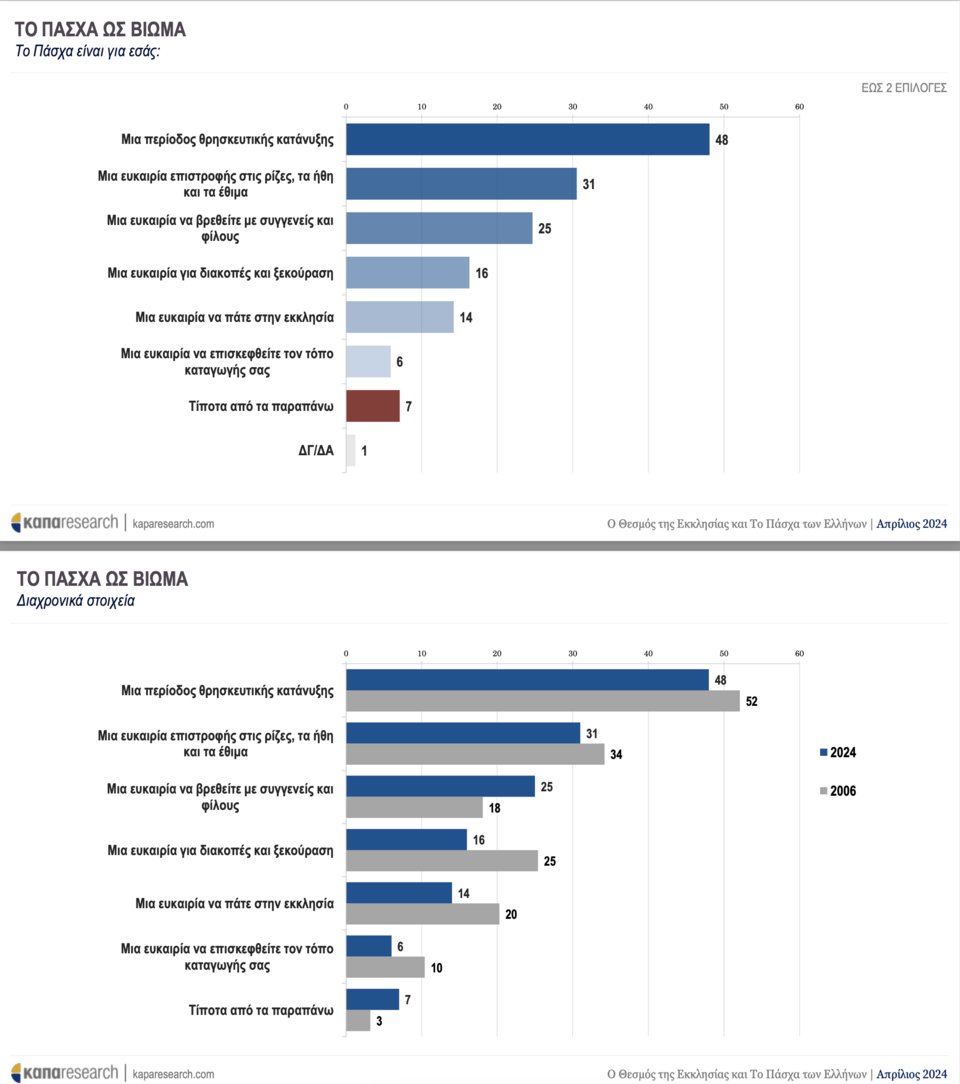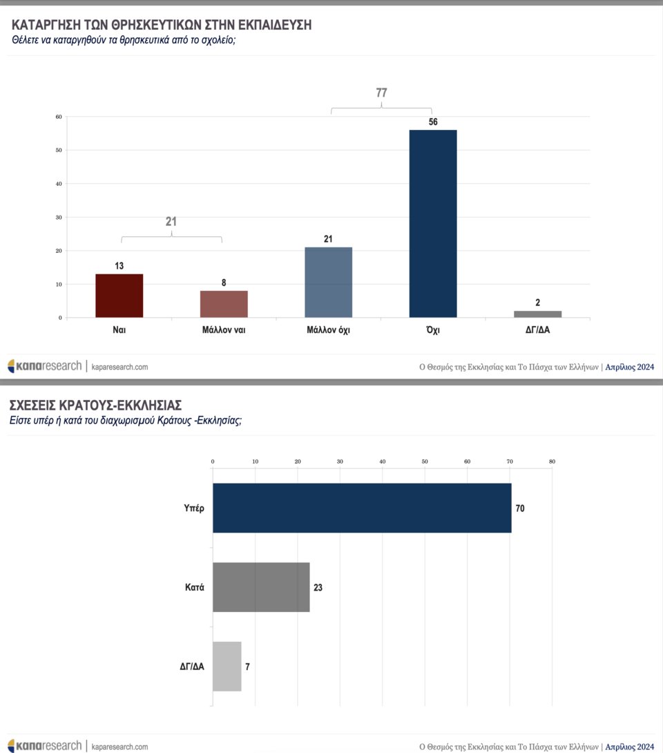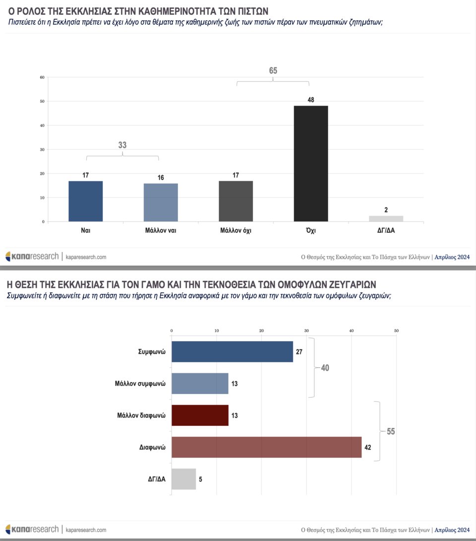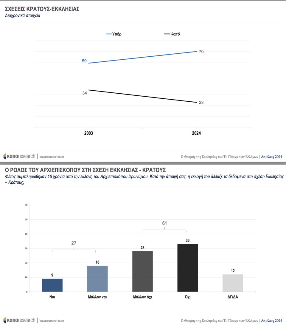 Το συμπέρασμα που προκύπτει είναι ότι η Εκκλησία ως θεσμός στέκεται μέσα στην πραγματικότητα που βιώνουν οι Έλληνες, δοκιμάζεται και αυτή μαζί τους, αλλά παραμένει για τους πολλούς μια εναπόθεση ελπίδας.