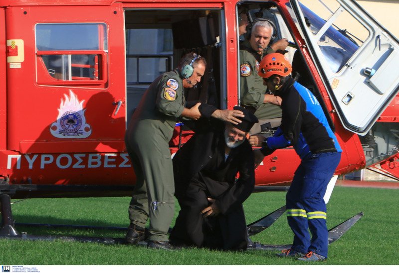 «Είμαστε ζωντανοί ακόμα», είπε στη συνέχεια ο ιερέας, κάνοντας λόγο για δύσκολες μέρες, ενώ σημείωσε ότι οι κάτοικοι του χωριού δεν θέλουν να φύγουν από τα σπίτια τους. Από την πλευρά της, η ηλικιωμένη γυναίκα, που μόλις είχε μεταφερθεί, άρχισε να κερνάει λουκούμια, τα οποία πήρε από το σπίτι της πριν απεγκλωβιστεί. Πρώτα κέρασε τους πιλότους και μετά όσους βρίσκονταν στο γήπεδο για να υποδεχθούν εκείνη και την κόρη της.