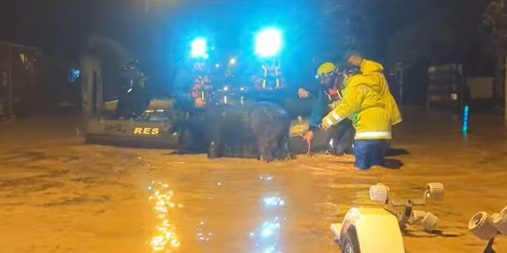 Το άτυχο ζώο είχε ακινητοποιηθεί μέσα στα νερά, αδυνατώντας να μετακινηθεί εξαιτίας της συσσώρευσης λάσπης και φερτών υλικών που προκάλεσαν οι χθεσινές καταιγίδες στην περιοχή.
