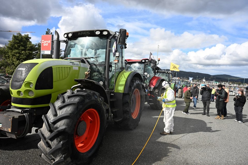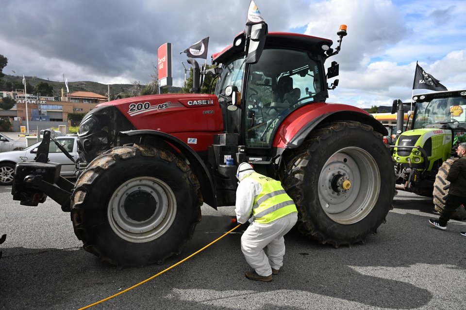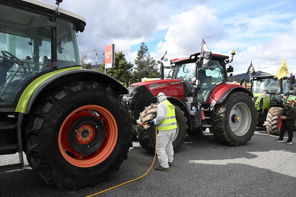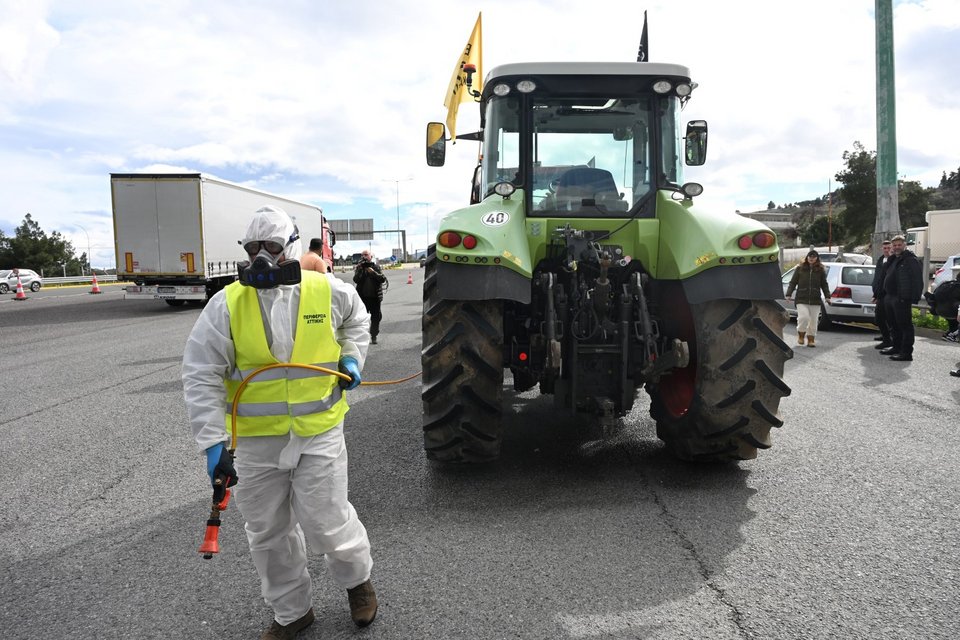Από απολύμανση περνούν τα τρακτέρ των αγροτών πριν κατέβουν στο Σύνταγμα, στο πλαίσιο προληπτικών μέτρων για την ευλογιά των προβάτων.