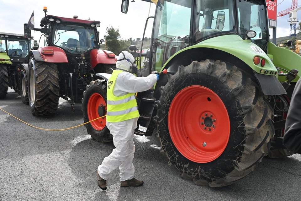 Σε φωτογραφίες του Νίκου Χαλκιόπουλου του πρακτορείου IntimeNews αποτυπώνεται η απολύμανση των τρακτέρ.