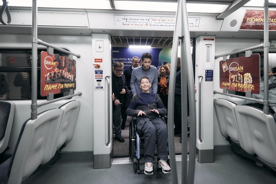 «Με πολύ μεγάλη χαρά χρησιμοποιούμε σήμερα, μαζί με τον πρωθυπουργό, τους δύο συναρμόδιους υπουργούς, τον κ. Κυρανάκη και τον κ. Παπαστεργίου, και βέβαια δύο καλούς μας, πλέον, φίλους, τον Παναγιώτη και τον Πέτρο, το μετρό. Αλλά πώς; Με τη νέα κάρτα. Την πλαστική κάρτα, που τα άτομα με αναπηρία πλέον κάνουν αίτηση, έτσι ώστε δωρεάν να μπορούν να τη χρησιμοποιούν και να μπαίνουν στο μετρό, να μπαίνουν σε όλα τα μέσα μαζικής μεταφοράς της Αθήνας, σε όλα τα λεωφορεία της Θεσσαλονίκης και σε όλους τους πολιτιστικούς χώρους, χωρίς να χρειάζεται όλη αυτή η ταλαιπωρία του παρελθόντος.